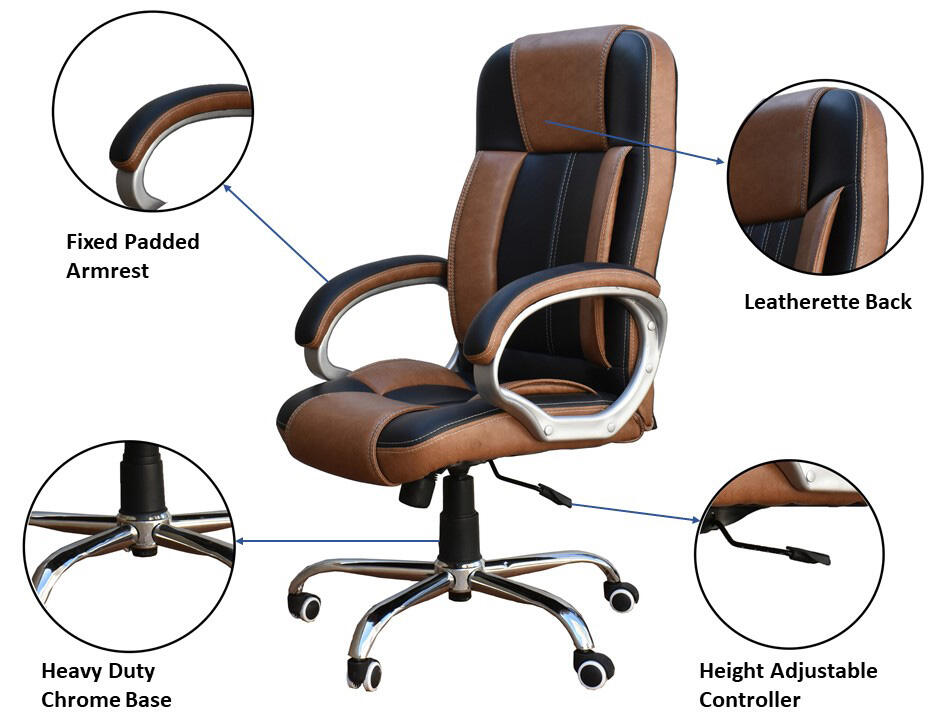This multipurpose home and office executive boss chair is a versatile product. It has been tested good for 100 kg maximum weight capacity. We use high quality materials for optimum comfort and long life. It has a chrome finish base for extra durability and strength. High density seat padding ensures comfortable seating position. The high back design gives maximum lumbar support for comfort and convenience. The chair has soft padding for less pressure on the back of legs to stay comfortable even for long hours.