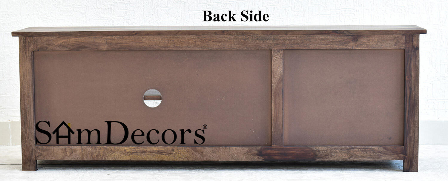 This multipurpose tv entertainment unit/cabinet made from solid sheesham wood (rosewood) will solve all your multimedia storage needs. Due to its universal design philosophy, it complements and goes with any kind of décor and other furniture items. It can easily accommodate TV sets upto 55 inches. The removable partition shelf provides flexibility and ease of convenience of storing articles of various shapes and sizes. The hole at the back provides effective cable and wire management. The back is made from MDF board to provide effective cable management and regulate the overall weight of the unit.