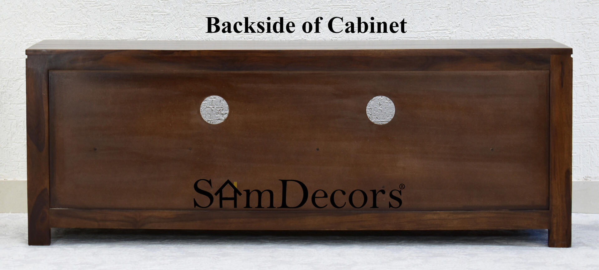 This multipurpose tv entertainment unit/cabinet made from solid sheesham wood (rosewood) will solve all your multimedia storage needs. Due to its universal design philosophy, it complements and goes with any kind of décor and other furniture items. It can easily accommodate TV sets upto 55 inches. The two holes at the back provides effective cable and wire management. The back is made from MDF board to provide effective cable management and regulate the overall weight of the unit.