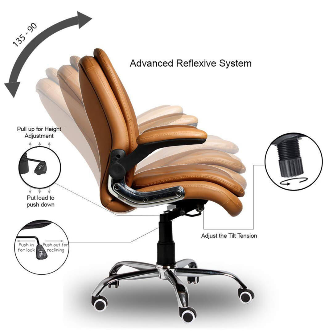 - The five castor wheels along with 360 degree swivel mechanism provide flexibility and a versatile range of motion. The knob at the base can be turned clockwise or anti-clockwise to adjust tilt tension.