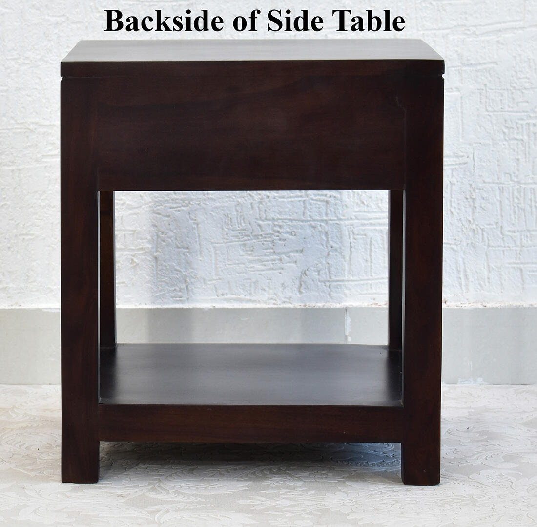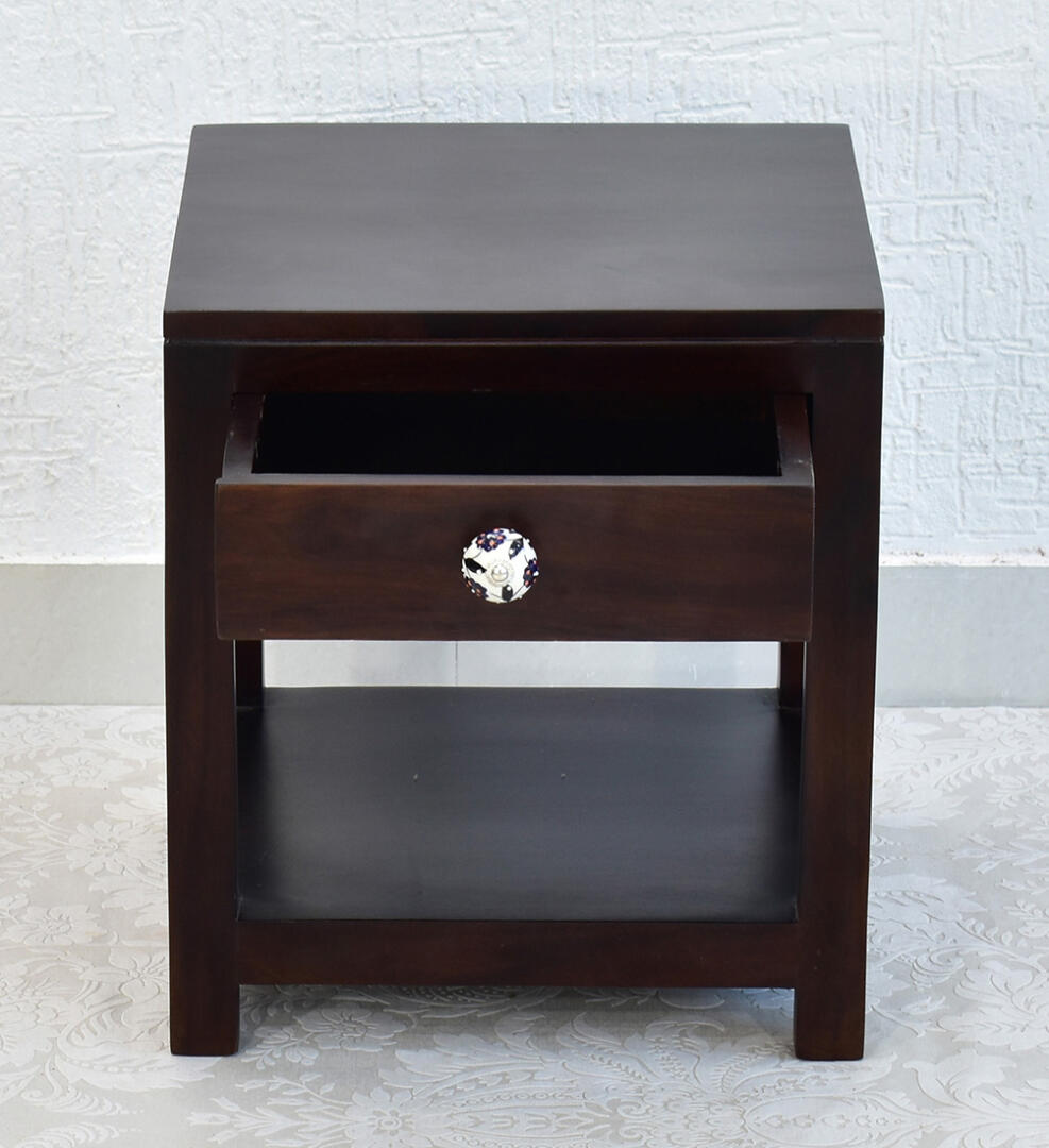 • This side table made from solid sheesham wood can be used as a bedside table for keeping small items like chargers, phones, water bottle, mugs, etc. The one drawer provides ample storage for storing small valuable items like keys, wallet, etc.