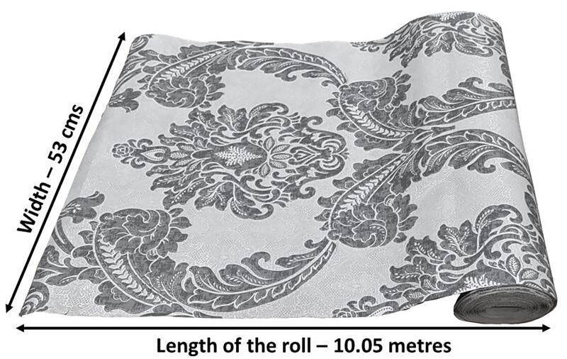 - Contents – One wallpaper roll of 57 sq ft. (wallpaper adhesives and applicators not included). Design – Classic, modern and texture surface. Suitable For – Bedroom, Living Room, Drawing Room, Cafe, etc. Type – Waterproof, anti-corrosion, not self-adhesive. Size – 10.05 metres x 53 cm = 57 sq ft. of each roll. Average utilization of each roll is 50 sq ft.