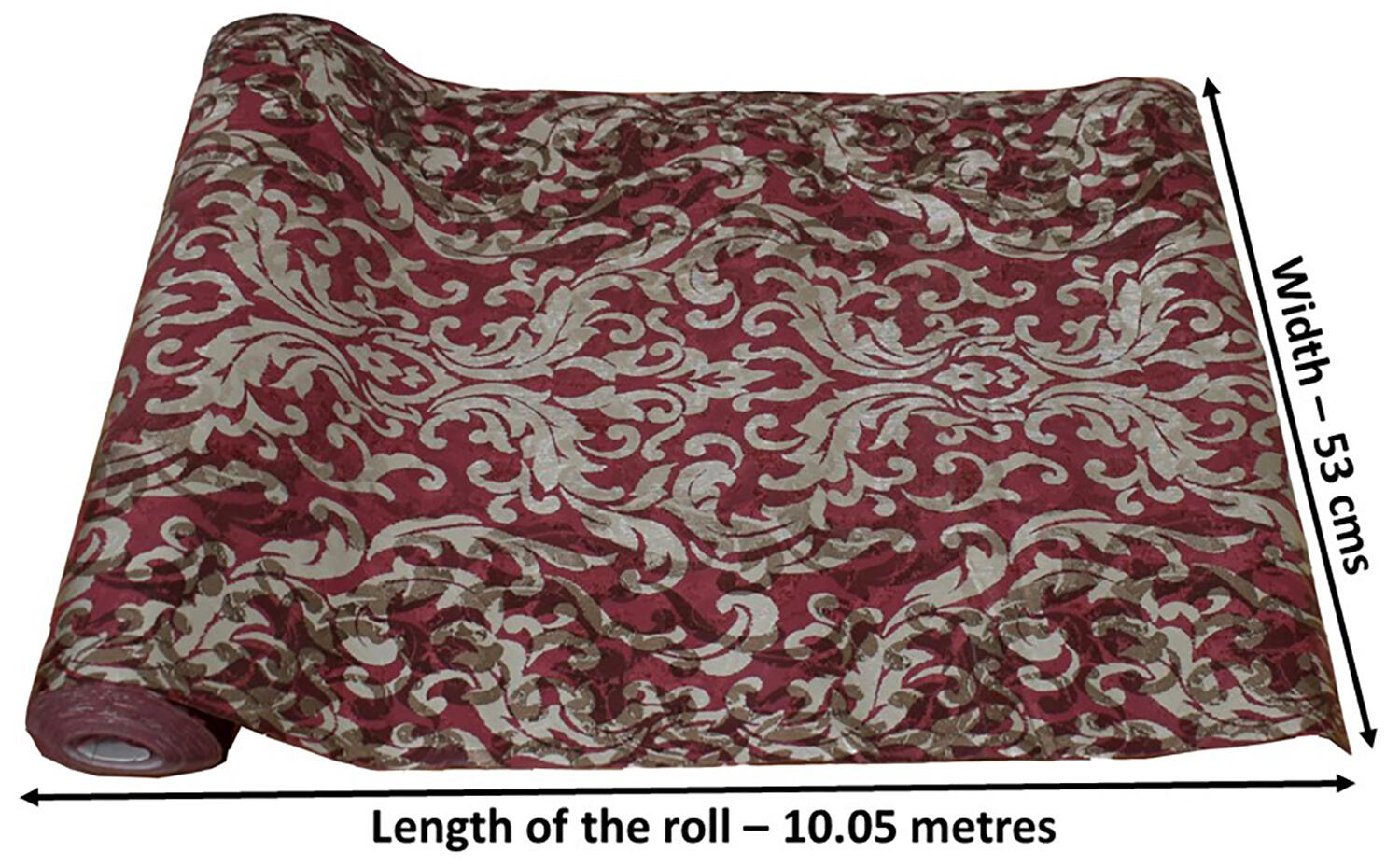 - Contents – One wallpaper roll of 57 sq ft. (wallpaper adhesives and applicators not included). Design – Classic, modern and texture surface. Suitable For – Bedroom, Living Room, Drawing Room, Cafe, etc. Type – Waterproof, anti-corrosion, not self-adhesive. Size – 10.05 metres x 53 cm = 57 sq ft. of each roll. Average utilization of each roll is 50 sq ft.